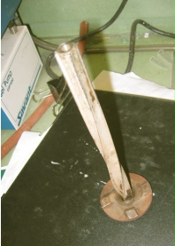 5. Because of the high pressure in the chamber when the autoclave is operating, there is a safety interlock on Amsco units that is intended to prevent someone from turning the door wheel when there is pressure on the inside of the door. However, if this interlock is broken, there is nothing to prevent someone from opening the door. Sometimes people are not strong enough to open the door by hand and resort to using a lever on the door wheel. There have been at least 3 instances of damage to the steel shaft that is part of the safety interlock on the Amsco doors in the Department of Biological Sciences (as of 2004). Look at the picture of a ¾" square stainless steel shaft that has been removed from one of our autoclaves in room G506 and note that the shaft has been twisted 90 degrees. If it broke, there would be no protection from opening the door under pressure and if the Chamber pressure gauge was defective, a person might not realize there was pressure inside. This shaft must have been damaged by someone using a tool or bar to open or close the door wheel since it seems inconceivable that an "average person" could twist a shaft this size by hand.