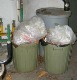Bags of waste can be disposed of by you into the green dumpster at the loading dock. Remove or deface any biohazard labels since the material should not be biohazardous. Do not abandon bags of waste in the autoclave room or place it in a green garbage can for Building Service workers. They are instructed not to touch any material that appears to be biohazardous.