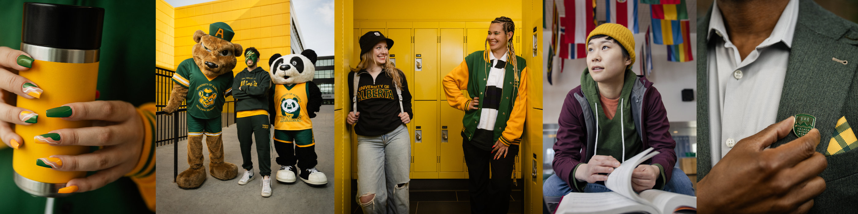 Whether it's your favourite green t-shirt, head-to-toe U of A swag or an understated touch of gold with a lapel pin, show your spirit in a way that feels good to you. Subtle or bold, go GREEN+GOLD!
