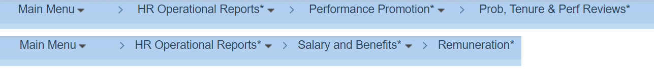 - Complete the form as instructed. Information required to complete the forms can be found under the Probation, Tenure & Performance Review report and the Remuneration report. These reports capture all the information for employees in a department who have performance or probationary reviews in a specific period of time.