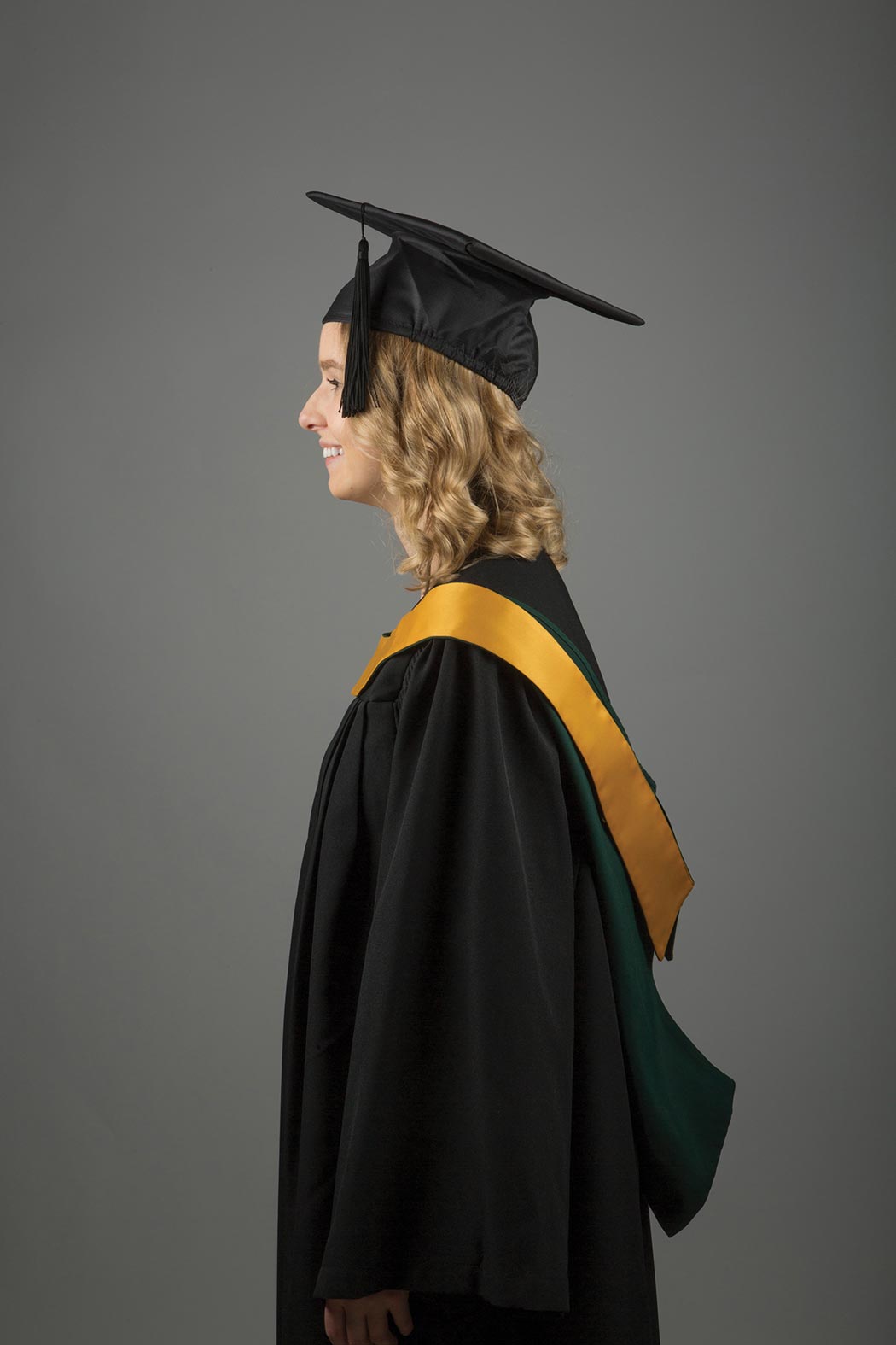 Plan to arrive 30 minutes before your ceremony dressed in your academic apparel, which includes a gown, hood, and mortarboard. Please see the images below for a representation of the appropriate way to wear your apparel.