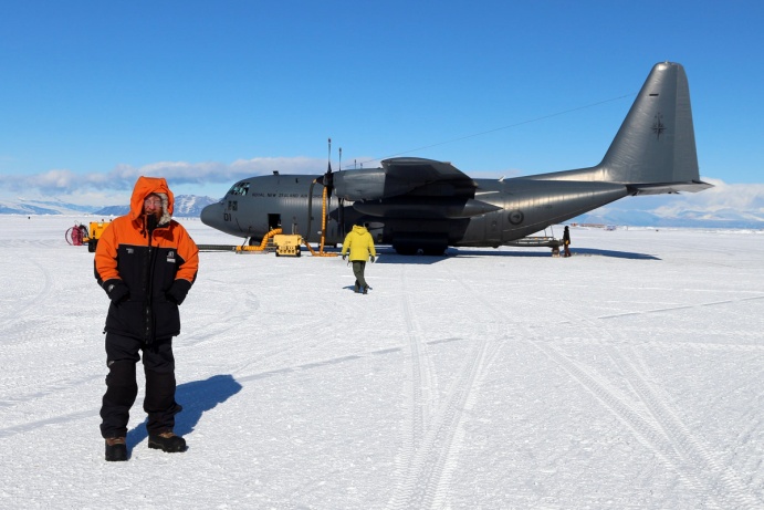 The next morning it was time to head north and on my last morning we enjoyed a view of Mount Erebus smoking in the distance. Graham Hill, John Stodt, Phil Wannamaker and Erin Wallin will stay until January and hopefully be able to increase the rate of data collection with some better weather and reduced competition for helicopter time. My northbound flight was with the Royal New Zealand Air Force on a C-130 Hercules. The C-130 is very loud inside, but with the webbing seats it was actually quite a comfortable, if crowded flight. As we headed north we had some amazing last views of Antarctica from the flight deck as we crossed Victoria Land. Finally after 8 hours we landed in Christchurch, and handed back the cold weather clothing to the staff at Antarctica New Zealand.