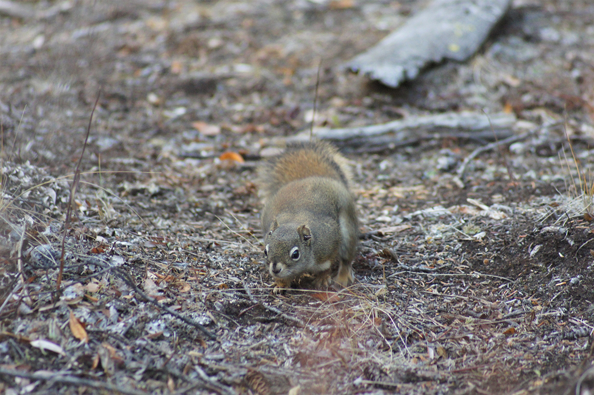 A North American red squirrel in search of spruce cones to cache. Photo credit: Anni Hämäläinen.