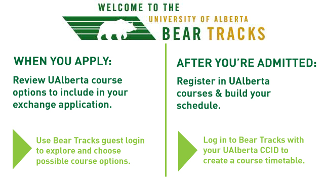 After you have been officially admitted to UAlberta as an exchange student, it is your responsibility to register in courses and build your course schedule using the My Schedule Builder tile in Bear Tracks. Please contact us if you require assistance and advice.Please note: