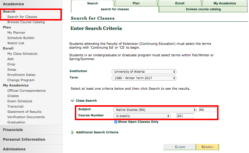 NS 201 - For Credit Student Signup