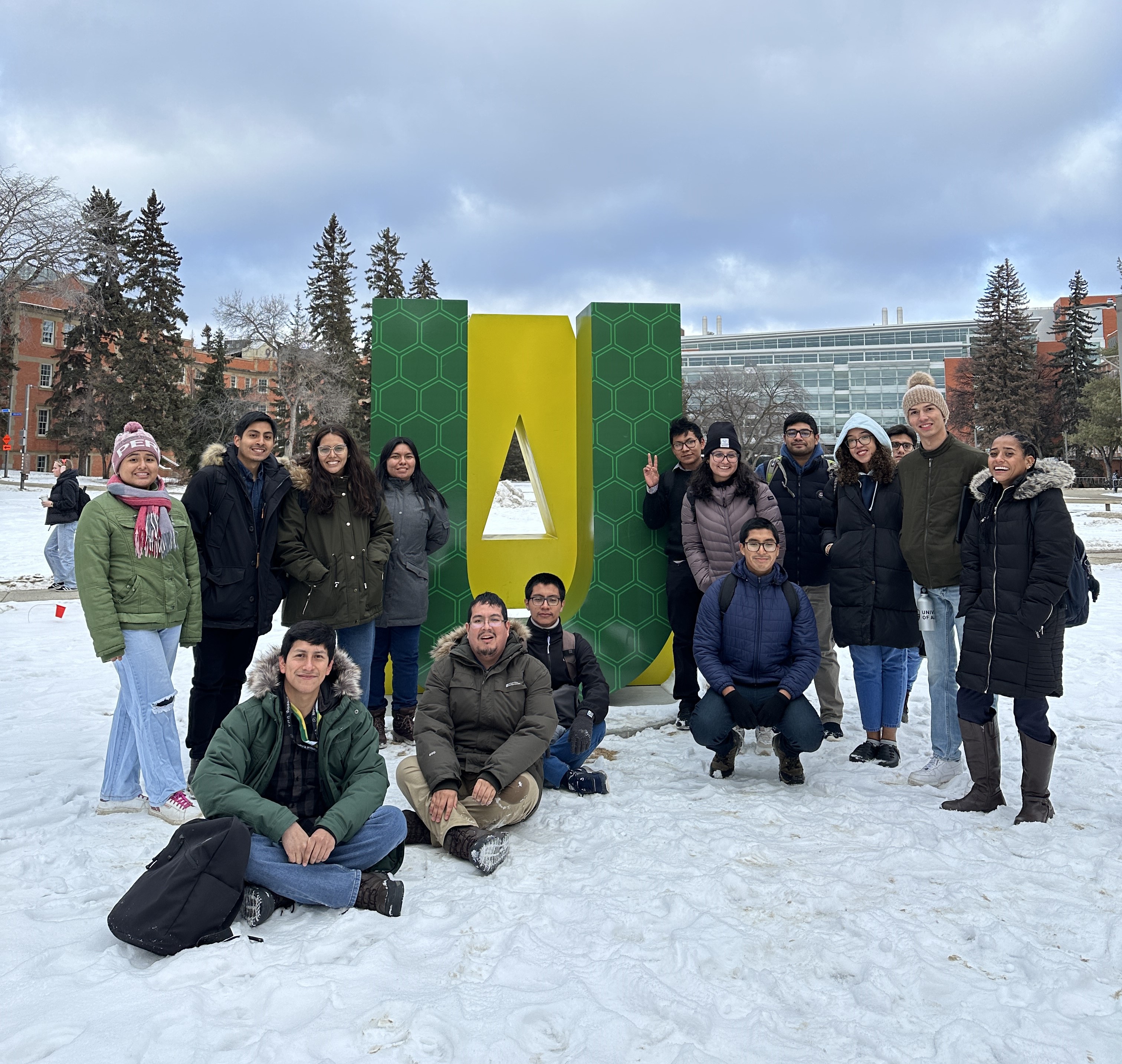 Photo of new visiting researchers participating in a Campus Tour as part of a Welcome Session for international visitors. Many were ELAP participants. Taken in February 2024 at Quad, North Campus in Edmonton, Alberta, Canada.