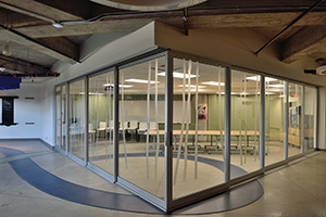 - Walls can be opened to connect the classroom to the common area, or closed to outside distractions.