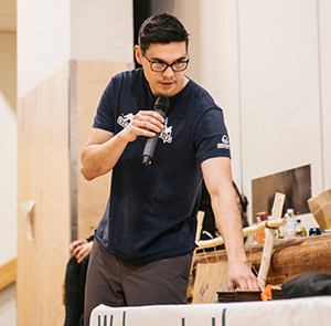Carson also cites that his time at Augustana is what has given him the skills and experience to excel as a Community Coordinator for the Aboriginal Sports Circle of the Northwest Territories. Through his work with this non-profit organization, he shares his goal of furthering the development of Indigenous culture through sport and athletics. Carson's vision is to revitalize the use of traditional games by responding to requests from many remote communities for his active teaching experiences. To make his goals a reality, he travels extensively throughout the territory to teach Dene, Inuit and other traditional games. But the remote locations can be challenging. At times, weather or distance can add unexpected costs and extensions to his schedule. One must be prepared for the possibility of a blizzard spontaneously causing a two-week delay; however, when Carson witnesses students learning the cultural relevance behind the games he shares, he is rewarded for all of his efforts.