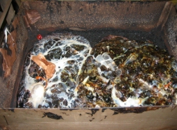 2. Someone in another department at the UofA autoclaved a solvent bottle containing a solution. They were removing the load on the autoclave cart when the top blew off the jug from the high pressure inside. The cap went straight up, smashed through the plastic cover on the ceiling fluorescent light and dented the metal fixture.