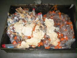| Unwrapped | solids only: glassware; instruments, bags of solid waste/Petri dishes with agar |