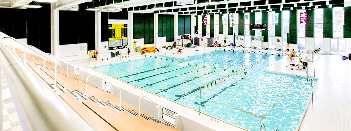 Our East Pool is a six-lane, 25-yard pool with a slightly warmer temperature and shallower depth, making it ideal for learn-to-swim programs, inner tube water polo, underwater hockey, and recreational swims.