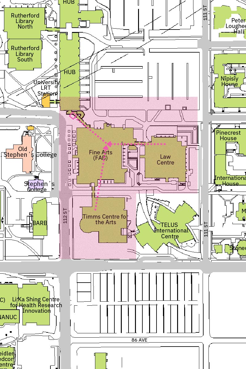 Fine Arts Building to Law Centre and Timms Centre for the Arts