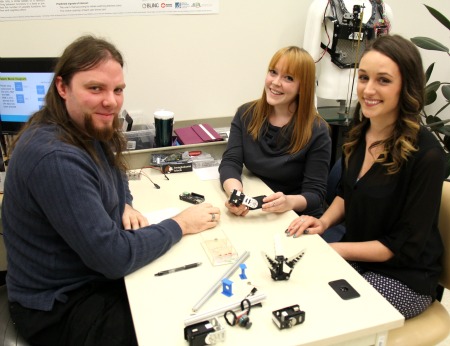 Electrical engineering students Adam Parker, Sarah Lezarre and Laura Bennet are designing and building a robotic prosthetic arm for their capstone project.