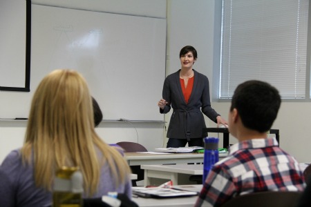 Geoenvironmental engineering PhD student Neeltje Slingerland, seen here teaching a senior geomechanics course, is bringing her background as a landscape architect to her approach to planning for the mining industry.