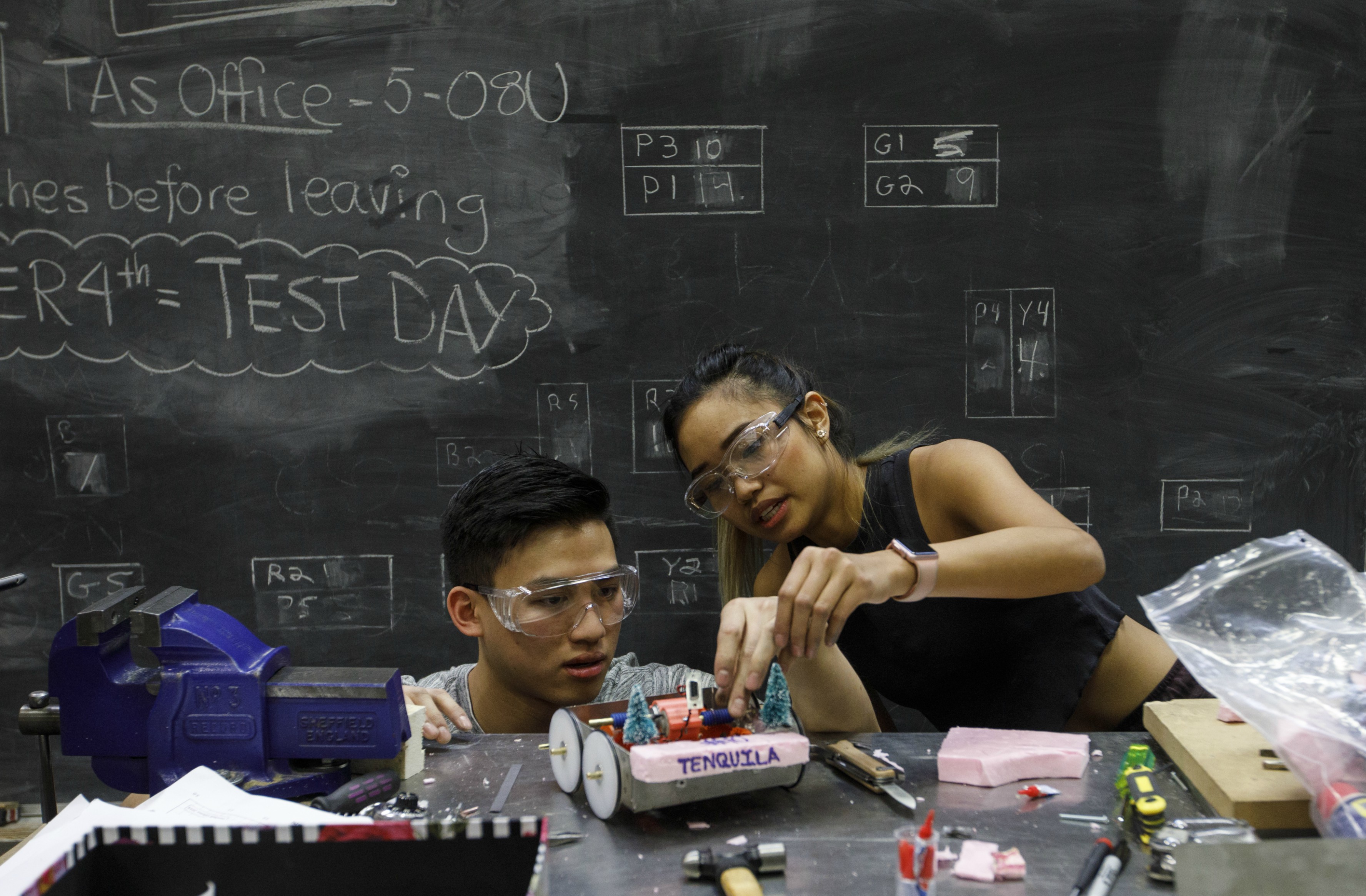 The assignment highlights the challenges of real-world engineering problems. "You can measure things in SolidWorks (a computer-aided engineering and design program), but that doesn't mean it's going to work in reality," said one student, whose robot got stuck in the pit.