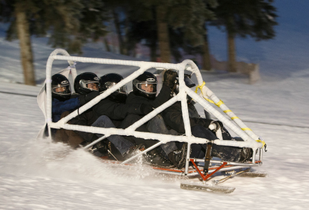 NEED FOR SPEED: The UAlberta GNCTR team puts its new sled through the paces in a pre-competition test run. The engineering student team is competing at the Great Northern Concrete Toboggan Race in Winnipeg Feb. 8 to 12.