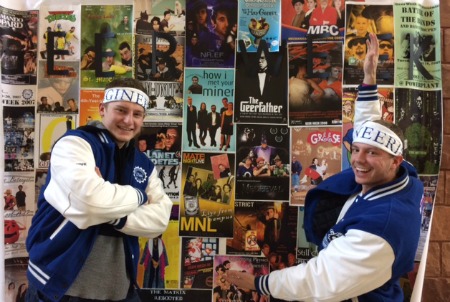 UAlberta Engineering Students' Society members Nicholas Seniuk and Josh Goselwitz posing in front of the movie posters created by the participating teams. Each engineering club had to produce a 10- to 15-minute movie reflecting their engineering experiences.