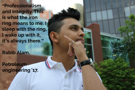 When he was finally fitted this spring for the iron ring worn by Canadian engineers, Alam knew he had completed an important chapter in his life.