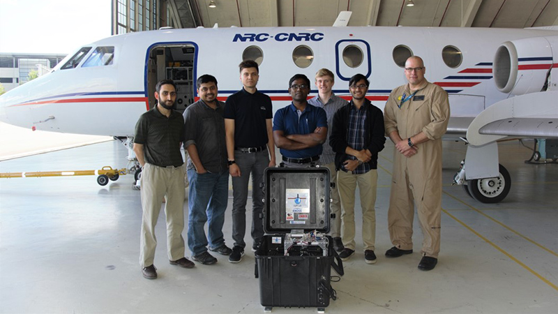 Ryan Baily and Farhad Ismail, who is now working towards his PhD, flew aboard the NRC Falcon 20 with two members of another student team from the University of Toronto. Bailey was responsible for running the experiments, operating six pieces of software controlling five pieces of equipment.