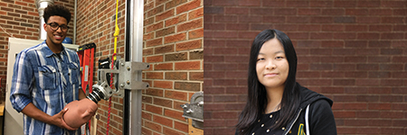 Ashton Martin (L) creates models for head-and-neck injury; Xishi Wang (R) develops implants for injured spinal cords.