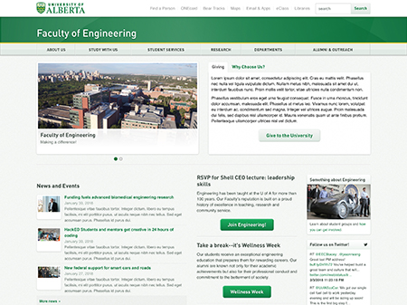 The most obvious change will be in appearance. The platform's template follows University of Alberta's green-and-gold branding but the Faculty of Engineering will continue to use its distinct colours and logo as a vital part of our visual identity.