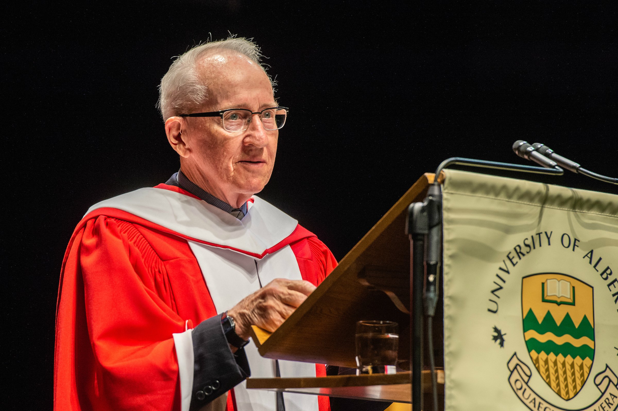 From the podium in the Northern Alberta Jubilee Auditorium-where he received his undergraduate degree in 1961-Haas told the Engineering Class of 2018 about the importance of seizing opportunities.