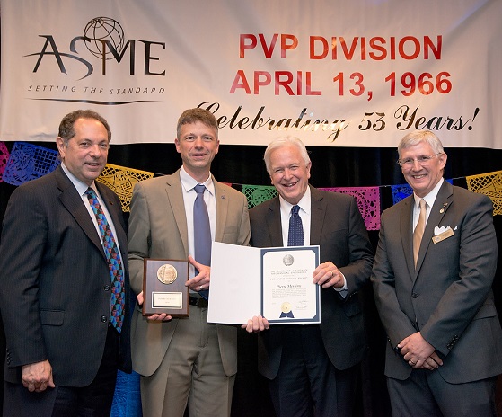 "The award message that was delivered explained that I was selected for the award for not only being a long-term contributor in ASME leadership positions, but especially for stepping up during last year's 1000-attendee PVP conference in Prague, Czech Republic," explains Mertiny.