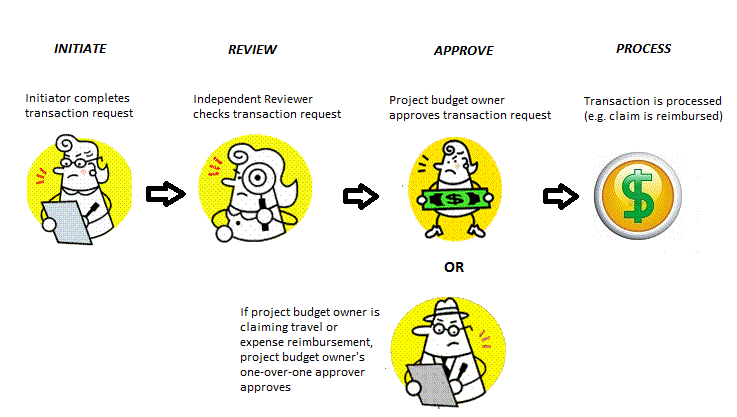 As implied by the name of the role, the review of transactions is to be performed by an individual who is independent from the preparer/initiator and can therefore perform the role objectively and free from influence. The independent reviewer is responsible for assisting the project budget owner (or the project budget owner's one-over-one approver, where the claimant is the project budget owner) in determining whether to approve the expenditures, by checking that it is: