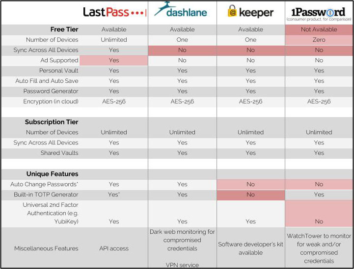 To get you started, the Office of the Chief Information Security Officer (CISO) has investigated four top-rated password managers and created a comparison chart: