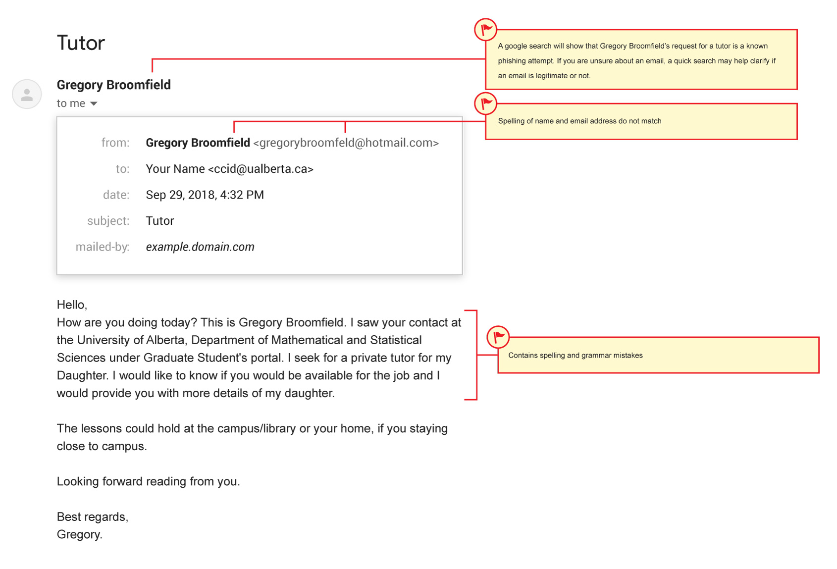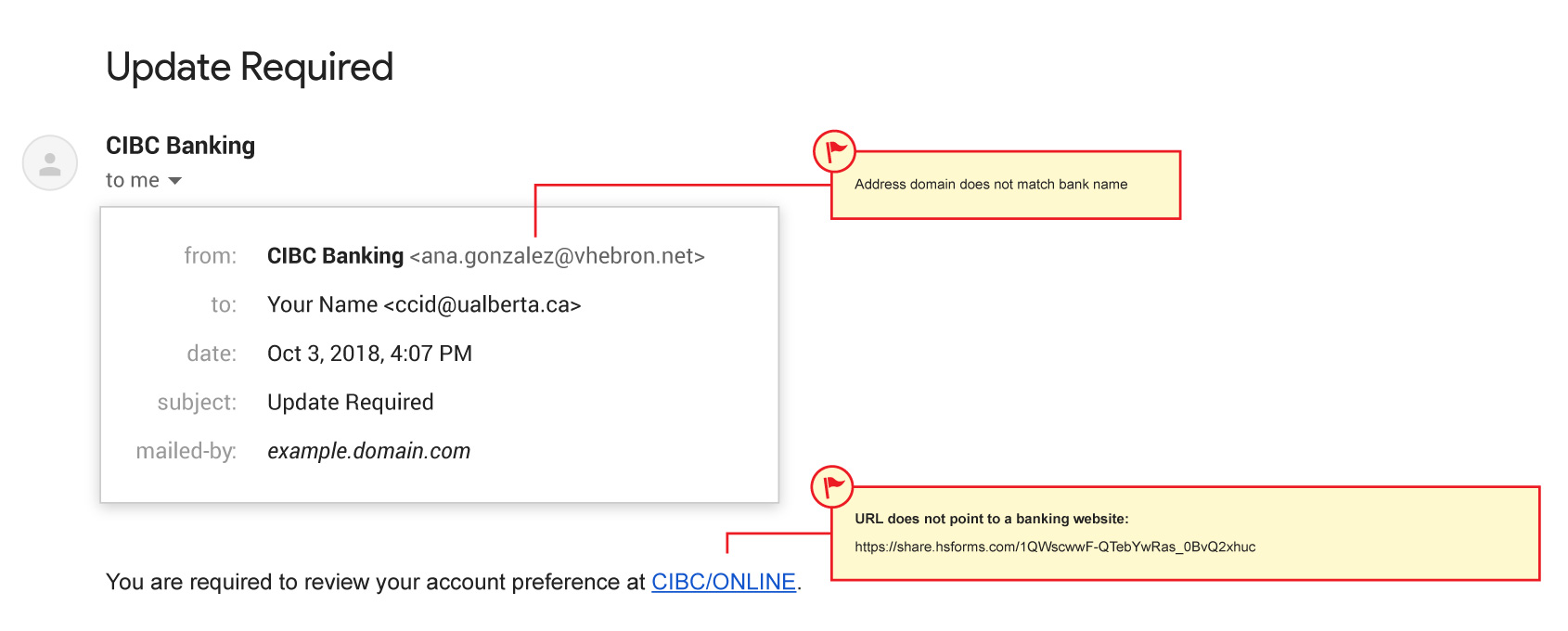 - Banks, lending institutions, insurance companies, health care services, credit card companies, municipal, provincial and federal governments will never ask for personal information via email. If in doubt, make personal phone calls to the various organizations/institutions to clarify.