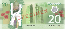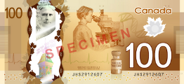 Canadian bills are currently made out of a polymer, which is water and tear-resistant; however, you may still encounter some older paper-like material.