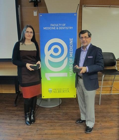 Covering the latest in neuroscience research from "the brain to the fingertips", Jack Jhamandas and Jacqueline Hebert spoke to a group of 120 colleagues and members of the public Monday evening at the Allard Family Lecture Theatre in the Katz Group Centre for Pharmacy & Health Research.