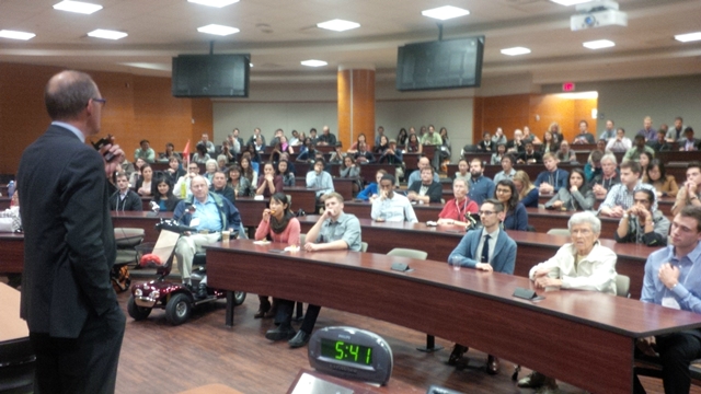 Fraser Brenneis, vice-dean of education, addresses volunteer patient mentors at the meet and greet event