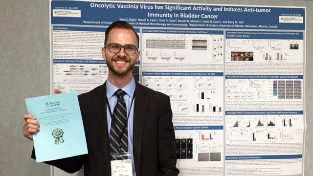 This graduate student and one of the youngest but keenest researchers in the fight against cancer wowed the audience at UAlberta Falling Walls Lab, taking the first place and audience award for his presentation "Breaking the Wall of Cancer Therapy with Viruses." Potts made a compelling case for the potential benefits of viruses in the fight against cancer, which could lead to replace chemotherapy and radiation. Potts, a member of the Cancer Research Institute of Northern Alberta (CRINA), also received the recognition of Best Poster for Basic Research in Bladder Cancer at the American Urological Association meeting in San Diego, California, earlier this year.