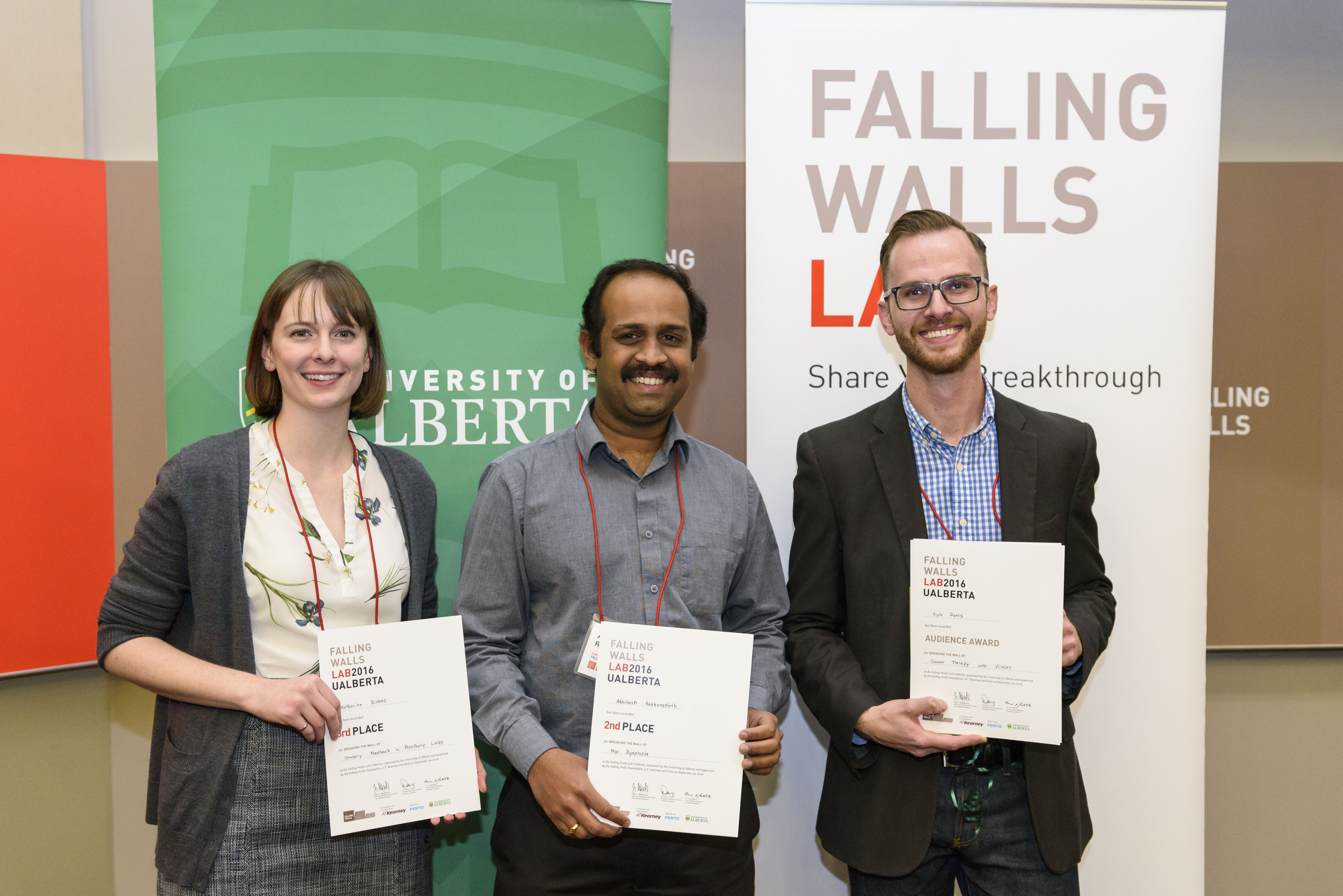 By winning Falling Walls Lab UAlberta, Potts, Hareendranathan and Schoepp have earned a trip to Berlin to compete alongside 100 of the world's leading young scientists.