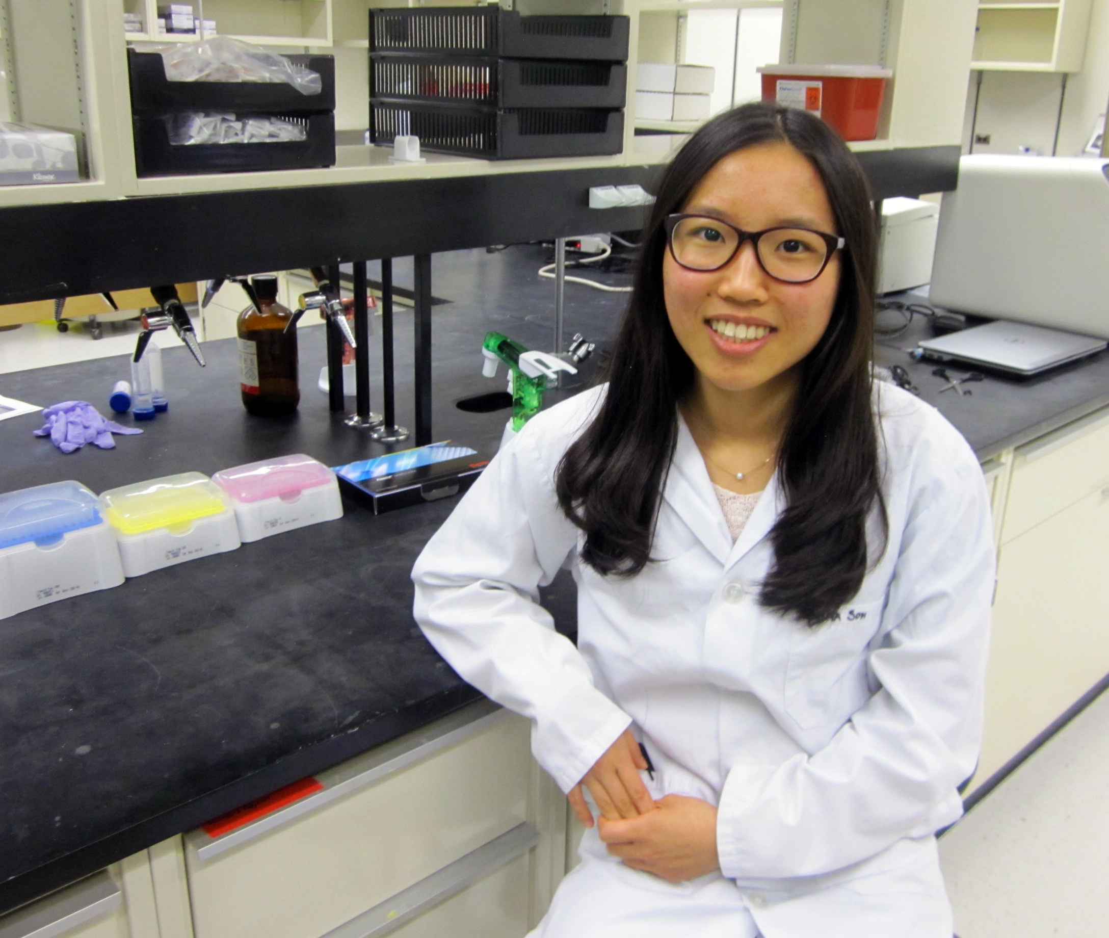 Second-year biochemistry student Sonya Soh presented her studies on how a new breast cancer and leukemia target behaves on cell membranes in order to help design novel drug molecules, and developed a new way to use polymers to make membrane nanoparticles.