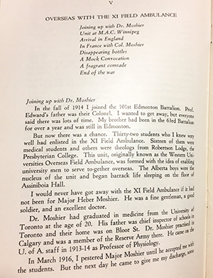 At the helm was Major Heber Moshier, the first professor of physiology and pharmacology at the U of A's medical school. Soon after Moshier's appointment as chair of the Department of Physiology and the outbreak of the First World War, U of A president Henry Marshall Tory tapped him to raise the university's contingent of the 11th (Western Universities) Field Ambulance.