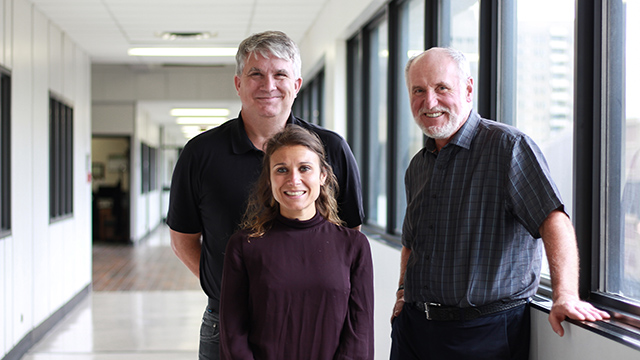Research associate Francesca Di Cara (front), associate professor Andrew Simmonds and Richard Rachubinski, professor and chair of the Department of Cell Biology, discovered that peroxisomes are necessary for proper functioning of the innate immune system.