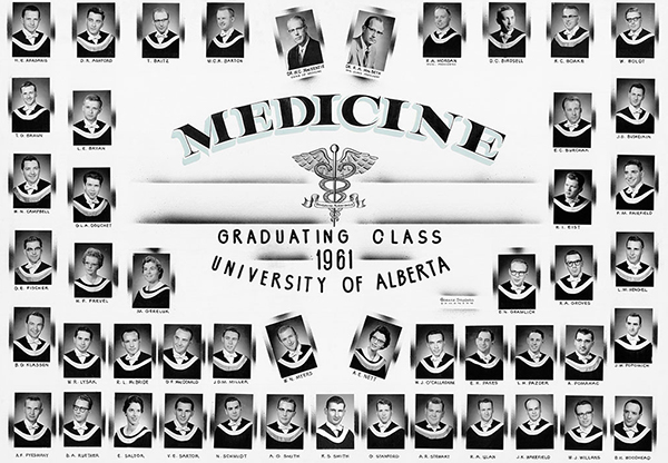 "We started with 65 students in the first year. By the second day of medicine-after the anatomy lab-there were 62," says MacDonald, laughing. The final count for the graduating U of A class in 1961 was 48 doctors. Their journey through the faculty was full of anecdotes and outstanding mentors-their medicine and surgery professors included tough World War II veterans, like the renowned former dean Walter Mackenzie himself.