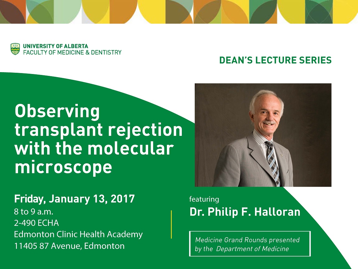 On January 13, Philip Halloran will be the featured speaker at the Dean's Lecture Series and Medicine Ground Rounds presented by the Department of Medicine.