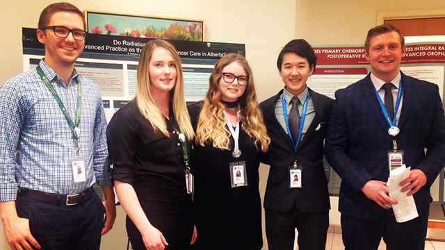 The Faculty of Medicine & Dentistry's Bachelor of Science in Radiation Therapy program began accepting learners in September 2014. Singleton, Martens, Freeman, Veldman and Woo were the only students in the first class. It was a daily task to explain their novel profession to others who constantly mistook them for X-ray technicians or radiologists.