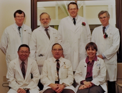 (Right: UAlberta Kidney Transplant Team - Top Row: Ray Ulan, John Dossetor, Rex Boake, William Lakey; Bottom Row: Thavisakdi (Ted) Kovithavongs, Kelvin Bettcher, Frances Harley. Courtesy of Medical Photography, University of Alberta Hospital)