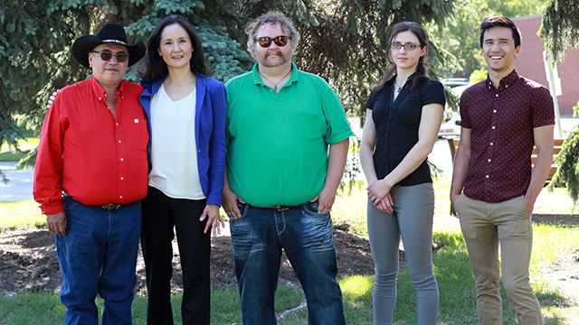 Several members of the IGS working group. From left to right: Elder Rick Lightning, Tibetha Kemble, Kenton Boutillier (IHIP), and MD students Bernardine Jugdutt and Paul Barber.