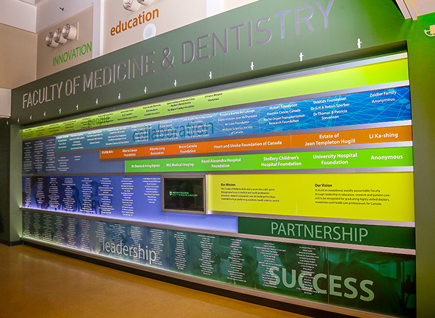 On September 20, the Faculty of Medicine & Dentistry unveiled a renovated recognition wall to honour the lifetime contributions of many philanthropists―individuals, families, alumni, foundations and their communities of donors that have provided $25,000 and above to support the faculty's research, education initiatives and health-care solutions.