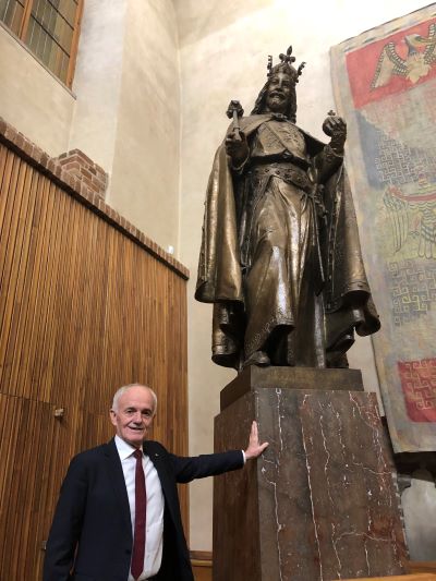 Philip Halloran, Department of Medicine, was awarded the Czech Transplant Foundation Annual Award in Prague on November 7, 2019. Halloran accepted this award in a ceremony in the Karolinum, the seat of the Charles University, one of Europe's oldest universities, founded in 1348 by Emperor Charles IV, Holy Roman Emperor and King of Bohemia. This award is particularly meaningful for Halloran because he collaborated with transplantation genetics researchers in Prague during his PhD studies. Read more.