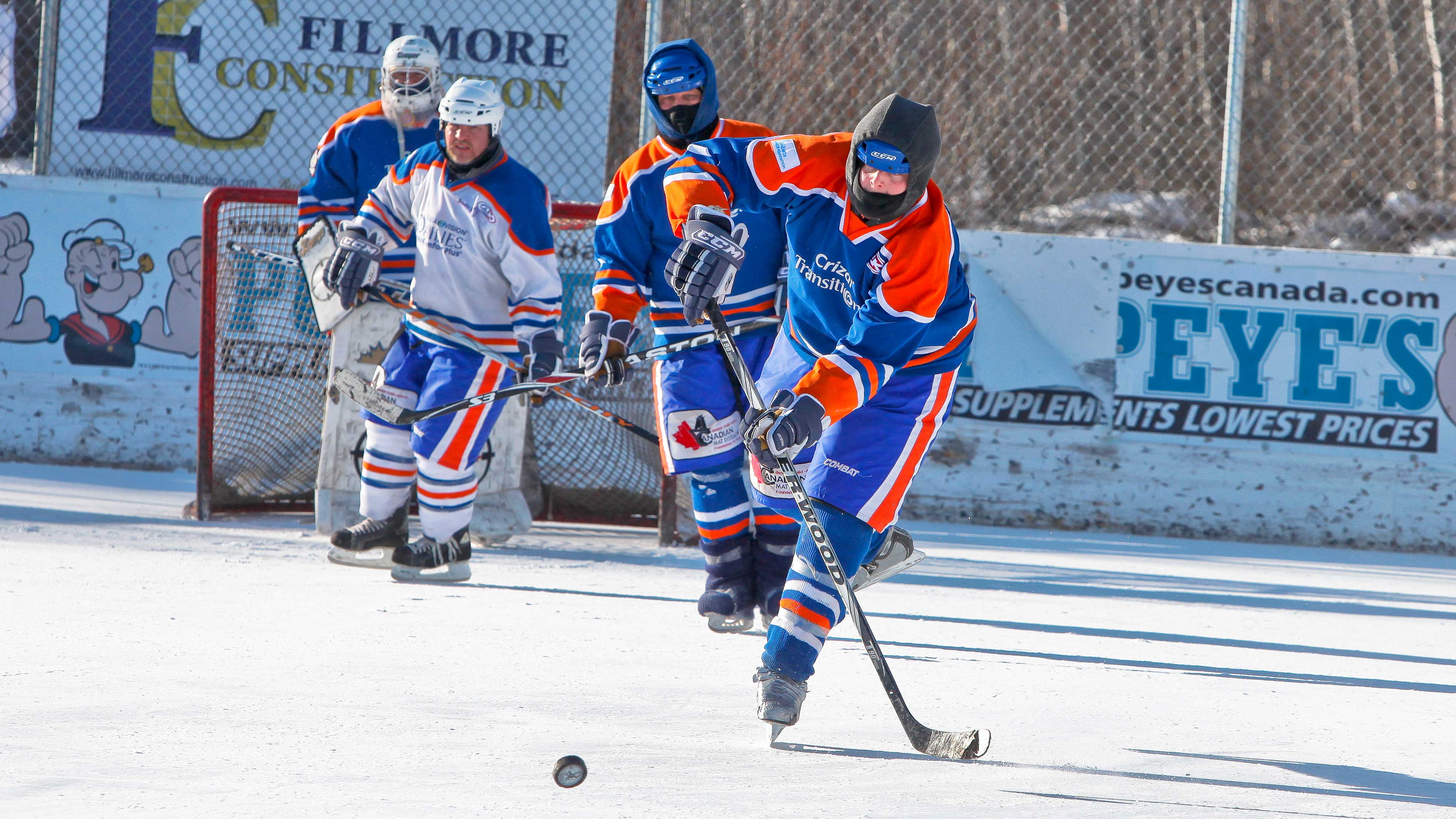 Canadian Press: Pucks shatter, blades break: Hockey players face off against bitter cold for cancer