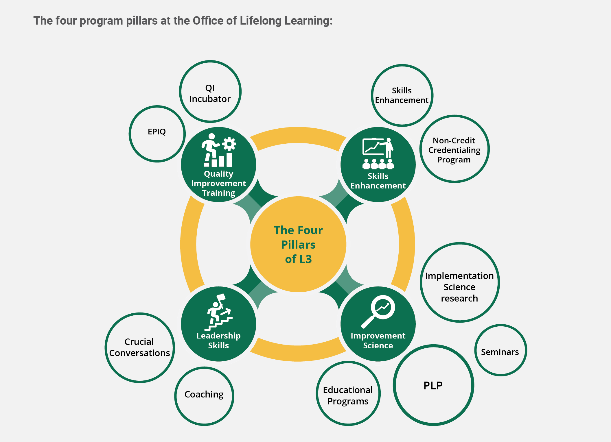 We advance healthcare ecosystem excellence by cultivating lifelong learning with a focus on adaptive leadership skills, improvement science, and evidence based practice.