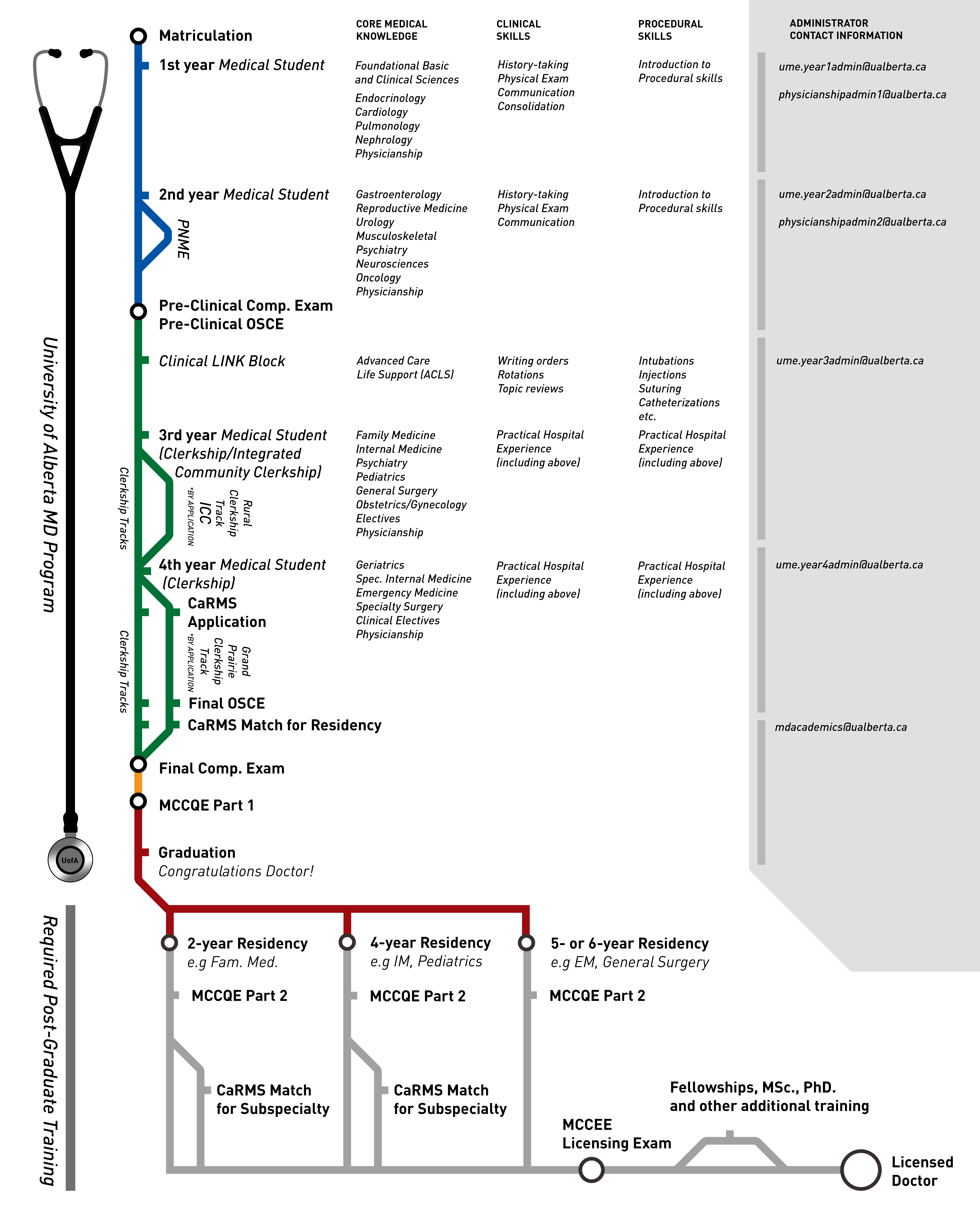 Students will learn professional identity formation, evidence-based medicine, clinical skills (communication and physical exam) and clinical reasoning principles, all of which are required to function effectively as a physician and lifelong learner.