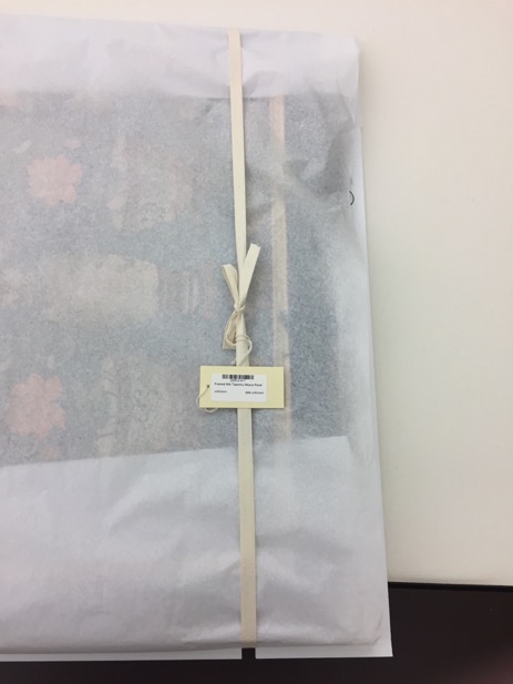 There were some occasions where it made more sense to attach a tag adjacent to an object instead of directly to it, such as when a framed work was hanging on a rack, or where a textile had no buttonholes or ties to attach a tag to.