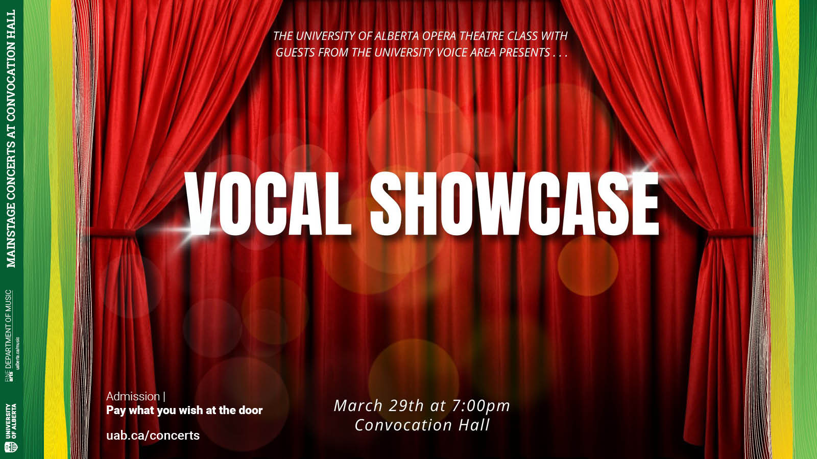 We're back! Only three weeks after the conclusion of Opera Theatre's successful run of Albert Herring, the dynamic and talented students of the Opera Theatre Ensemble welcome guests from the U of A Voice Area. Join us for an evening of classical favourites and musical theatre hits as well as a sneak peek at what's on the horizon next year!